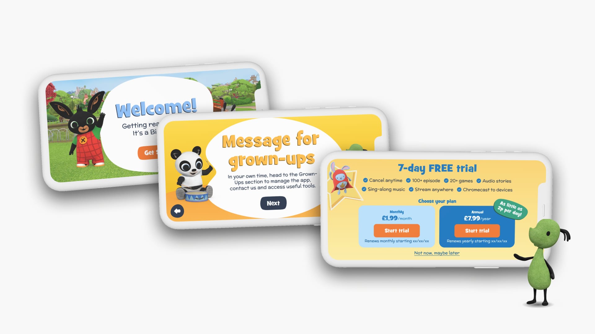 At the heart of this project was a clear challenge: how could we help Bing improve subscriptions to the app, reduce drop-offs, and maximise revenue, whilst still delivering that magical experience families love?
